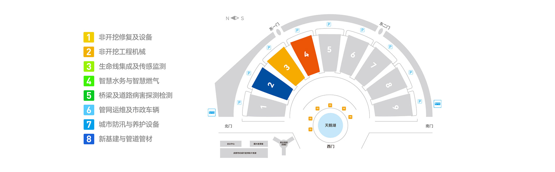 2025成都國際管網展覽會特設3大展館,10大展區,城市生命線、非開挖修復及設備、城市防汛與養護設備、道路病害及探測檢測、管網改造泵、管材管件、污水技術及污泥處理等行業。